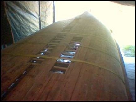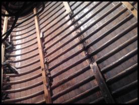 Most of the ribs were cracked and rotten around the keelson, eventually most of the ribs were removed and new stock scarfed in.