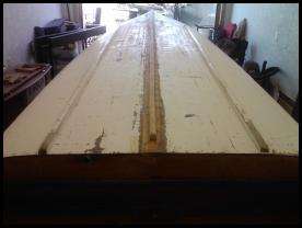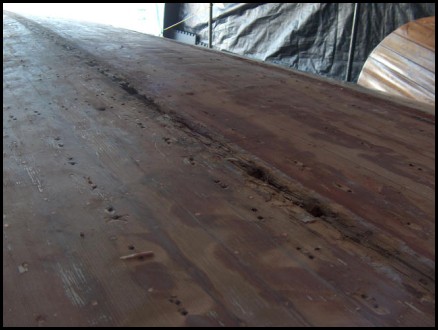The mahogany decks had been stained and the varnish and the nails had failed. They were removed and stripped.