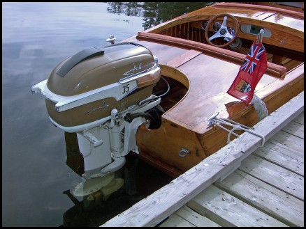 This nice original 1958 Electric Starting 25 hp Viking was aquired in 2014 and tuned up for the summer of 2015. |