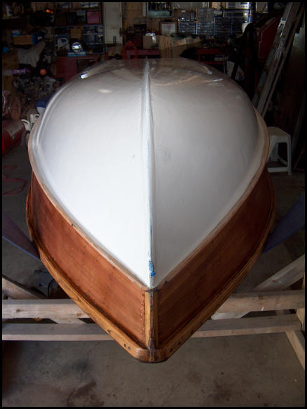 Two fresh coats on the bottom, three on the inside, five more for the decks and 8 coats for the topsides.