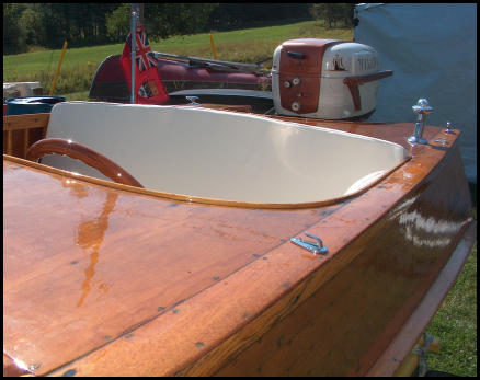 Everything was stripped and re-varnished prior to re-installation. Notice the mahogany steering wheel, a present from my brother-in-law who enjoys classic car restoration. |